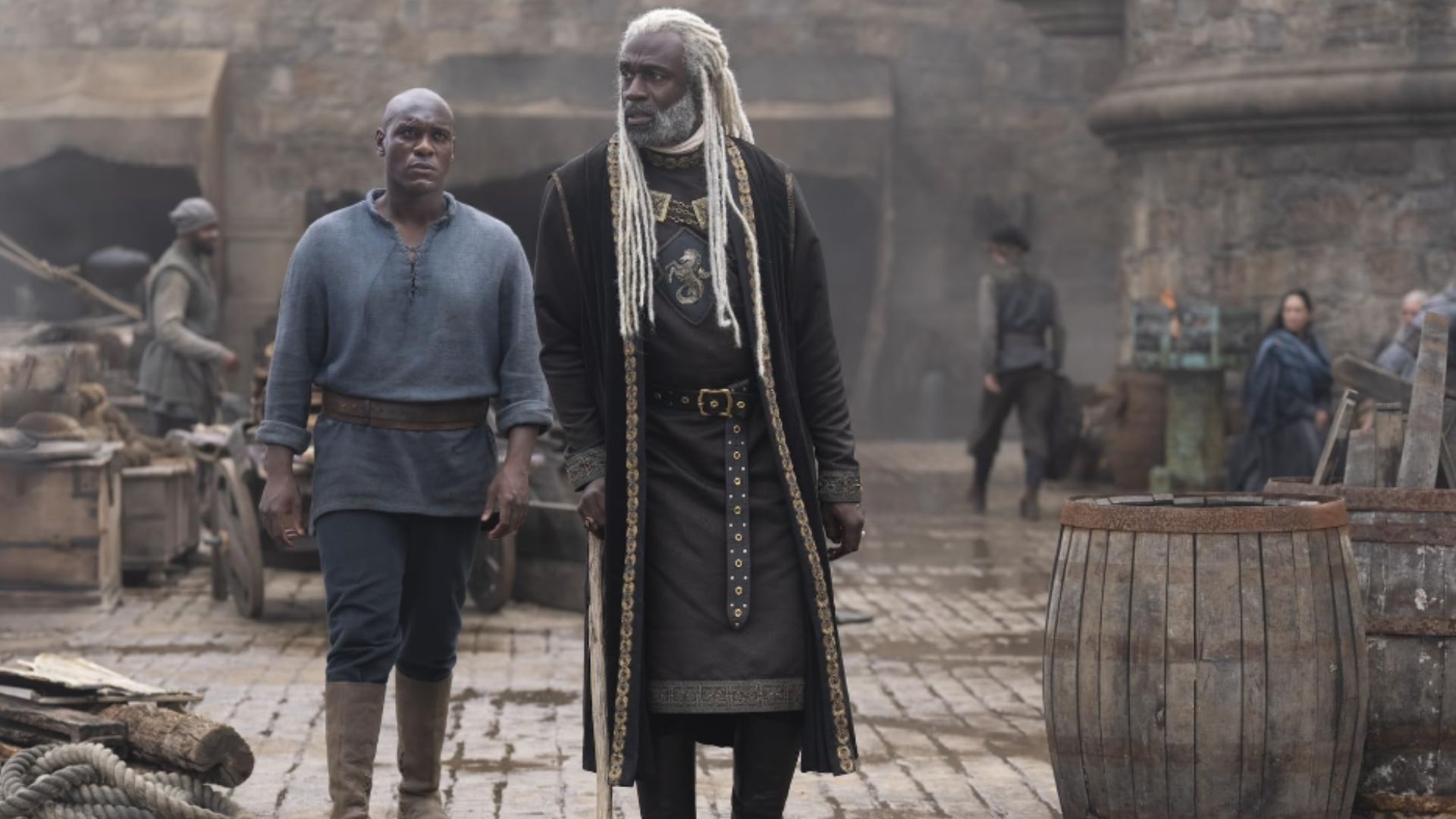 Rhaenyra flies her dragon Syrax to Harrenhal accompanied by Addam of Hull, where she is greeted by Simon, the rest of the army is unsure whether to ally with her or consider her a rival. Daemon and Rhaenyra address their issues in High Valaryian. Rhaenyra is just there to find out where she stands with Daemon in the current situation.