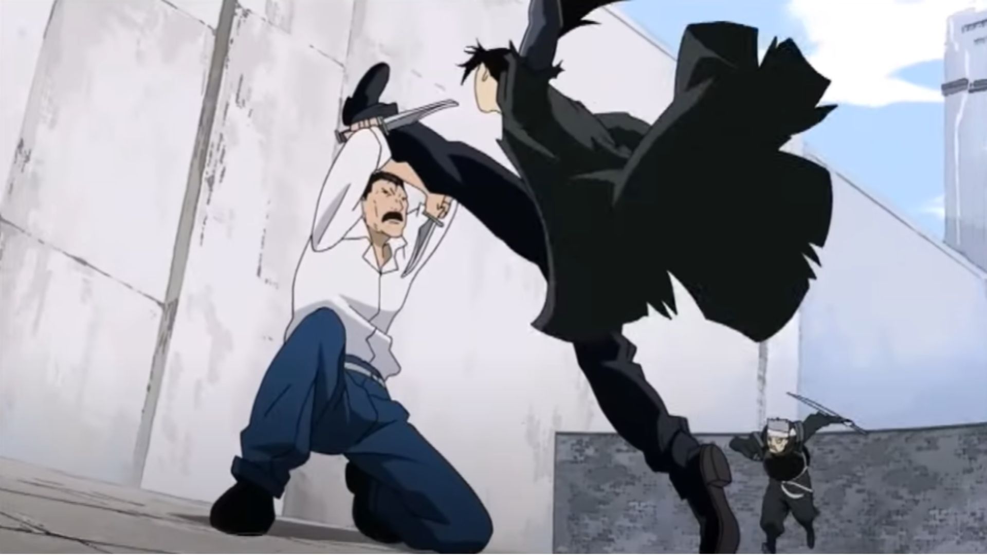 The arrival of Izumi and Sig Curtis turns the tide, creating a tag-team battle of exceptional warriors. The destructive power displayed threatens to bring down Central Command headquarters itself.