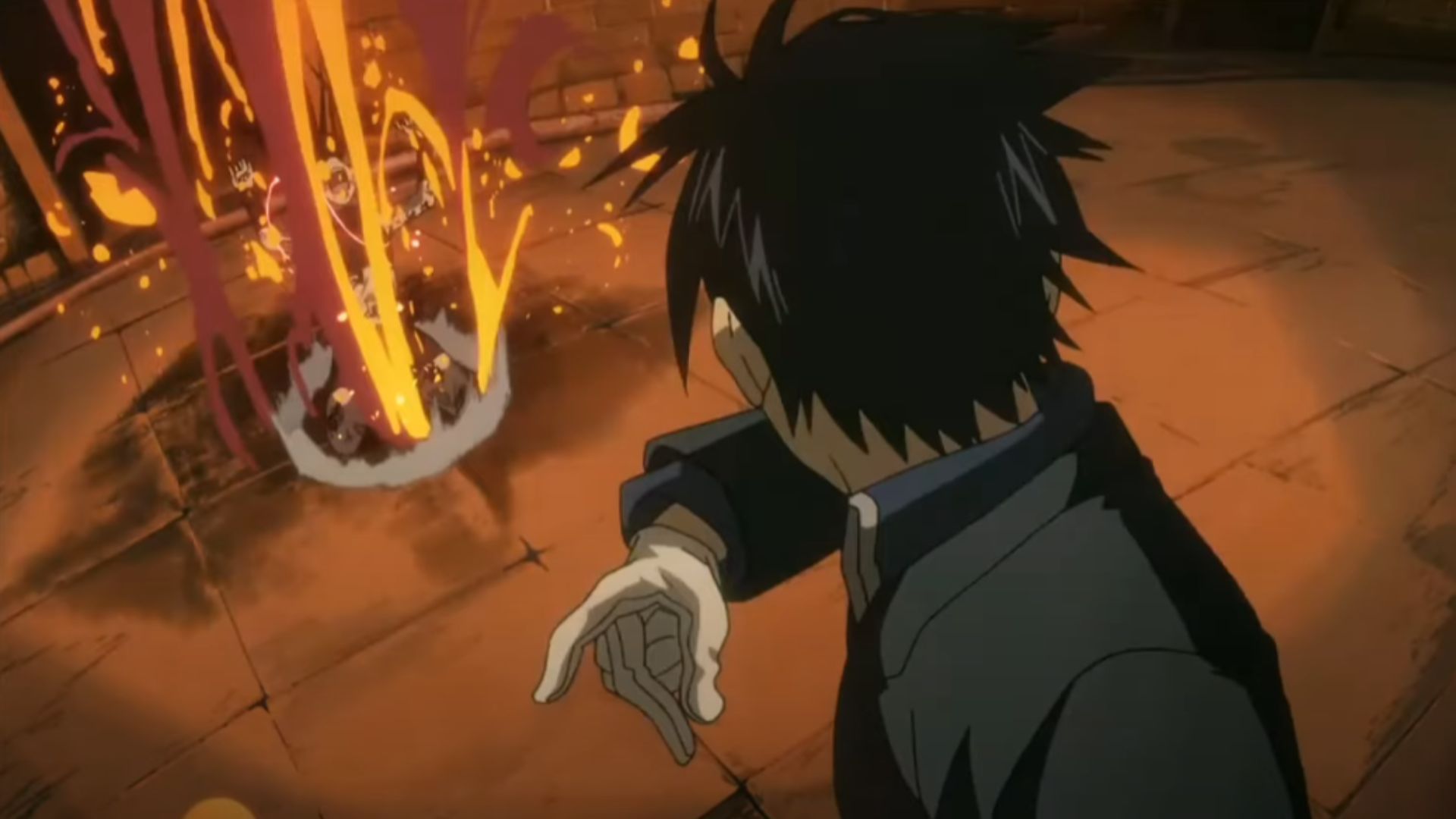 Mustang's allies must stop him from becoming the monster he's fighting against. This internal struggle between righteousness and vengeance creates surprising tension that defines the character's arc throughout Fullmetal Alchemist: Brotherhood.