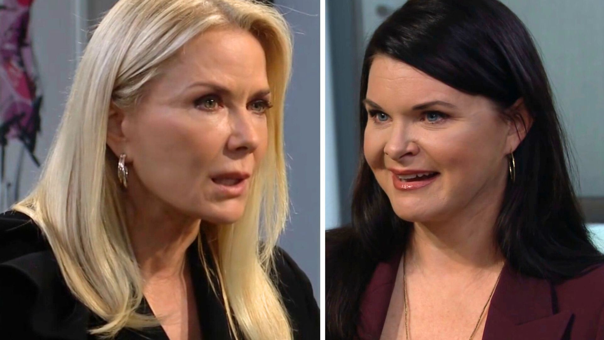 We won't mince words here. Brooke truly is a piece of work. Last week, we weren't quite sure who to side with in the 'Logan' name war, but we are firmly on Team Katie. The way Brooke is making scene after scene about Katie daring to use HER name, which, by the way, is also Katie's name, is insane. First, the name Logan is one of the most common surnames around, so neither Brooke nor Katie has the exclusive right to it, even morally, much less legally. And second, Katie is absolutely correct that Logan is nothing more than a pet name that Brooke's husband calls her. She is not known as just Logan to anyone else, including the world. She is Brooke Logan. And her sister is Katie Logan. And if Katie Logan wants to use her last name for her new company, then she should be able to. After all, Brooke's copyright on the name had expired, and Liam (Brooke's own son-in-law, again) snagged it. Plus, the way Brooke spoke to Katie was pretty gross. Brooke clearly thinks she is better than everyone else (kinda like Steffy, which is likely why they don't get along), so why wouldn't Katie spend her life admiring all things Brooke? Maybe Katie is right. Maybe Brooke just doesn't like that Katie finally has Bill all to herself after all these years.