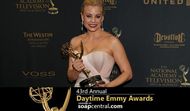 But not too stunned to have a game plan for where to show off her new Emmy hardware. "I will put it where everyone who walks in the house will see it! I'm not going to be hiding it someplace," Collins joked. "I'll put it where everyone -- even the pizza delivery [guy] -- sees the Emmy. Everyone!" Earlier on the Red Carpet, Collins mused that she hasn't slept since having her baby in January. So one might understand if she chose to skip the afterparties to head to one of the rooms at the Westin Bonaventure hotel for a long night of rest and relaxation. Well, except for one tiny detail. "This is the first time that I've left the baby this long," Collins admitted. "This is only my second night out with my guy, Michael, since she was born! So I've been checking my phone, and the fact that I'm here with you and not checking my phone is really kind of crazy! But I have like ten people watching her. All her grandparents are watching her, I have a couple of friends, I have a nanny, she's got her sibling, so ten people have eyes on her. I'm sure we'll all celebrate when I get home." When asked if there had been any names that she'd left off of her on-stage acceptance speech, Collins nodded and said the list of people she could not thank was quite extensive. "You know, I was saying this before, winning one of these, there are so many people involved. The entire crew, the cast, and the people who work with me, my friends, my family, and it's impossible in the [time] they give you to thank everyone," Collins said, "So if I've said hello to you in my life, then I include you in this! Thank you very much." This is the seventh time an actress from The Young and the Restless has won the Supporting Actress category. The show is now tied for second place with All My Children, and just a win away from tying first place General Hospital. » PART THREE: YOUNGER ACTOR AND ACTRESS