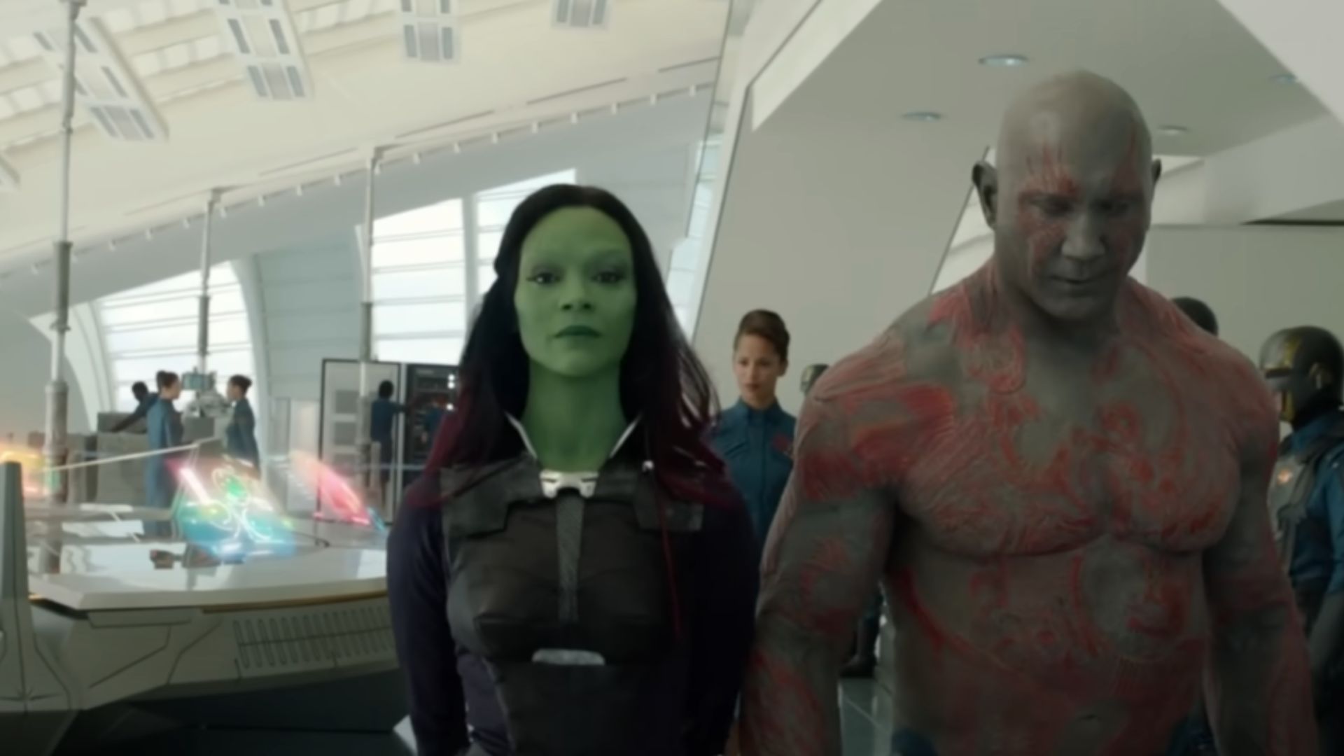 Zoe Saldaña as Gamora, a deadly fighter, worked for Thanos. But she tries to do the right thing, turns against Thanos and joins the Guardians of the Galaxy. She helps the Avengers in Infinity War because she knew a big secret: where the Soul Stone is hidden.