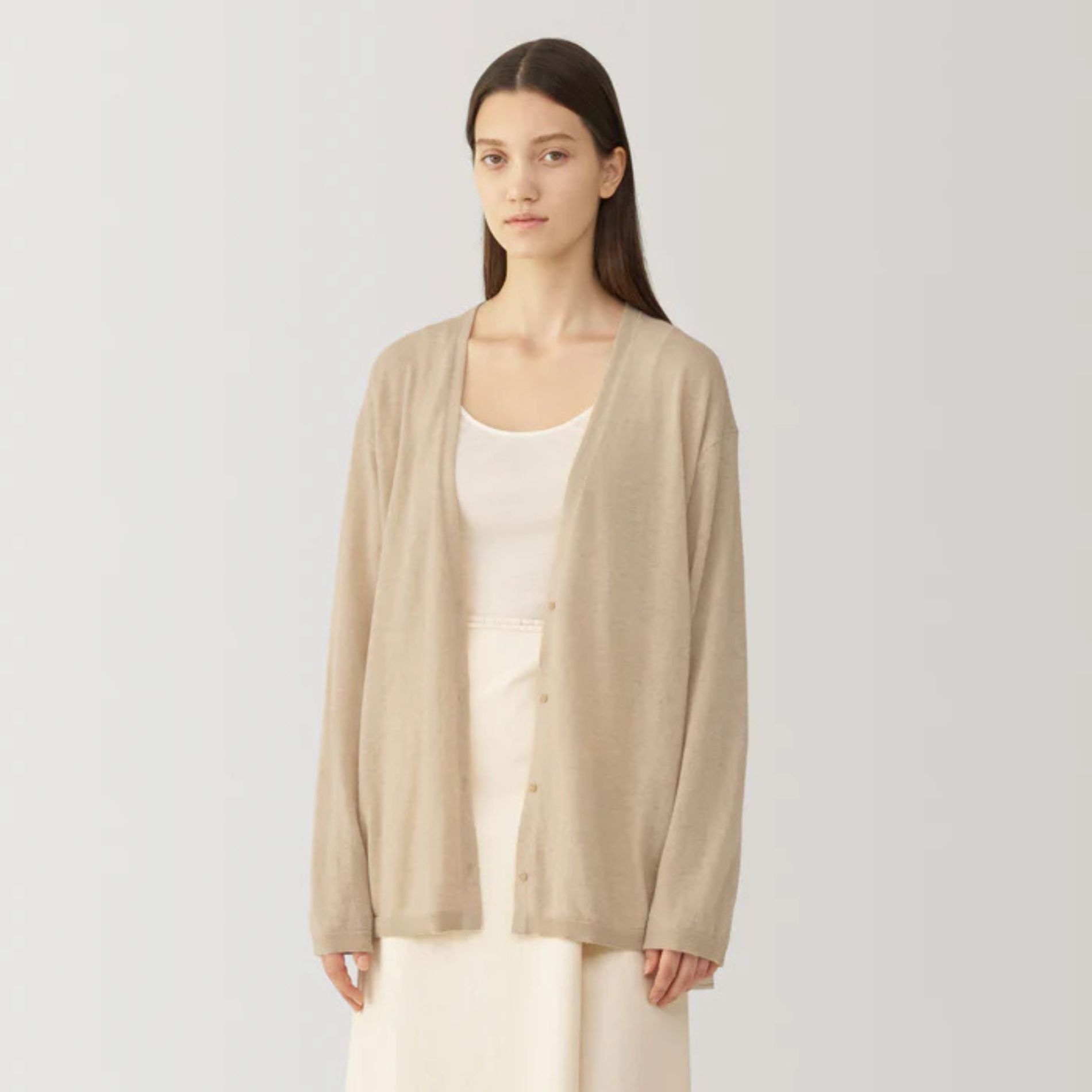 "Soft, light, delicate, and comfortable to wear on bare skin, this cardigan has a relaxed silhouette and doesn't fit tightly. Thin, yet warm for chilly fall and winter days."