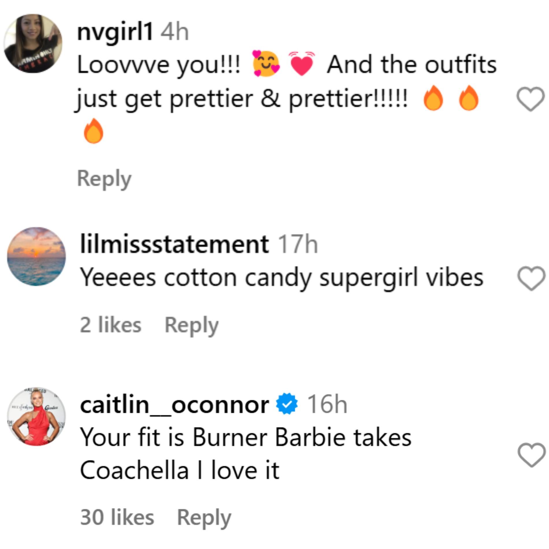 "Your fit is Burner Barbie takes Coachella I love it," another user, @caitlin__oconnor, added.