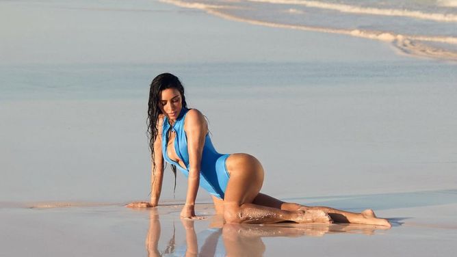 "Raising the bar high": Fans react as Kim Kardashian poses for her upcoming SKIMS swimwear collection