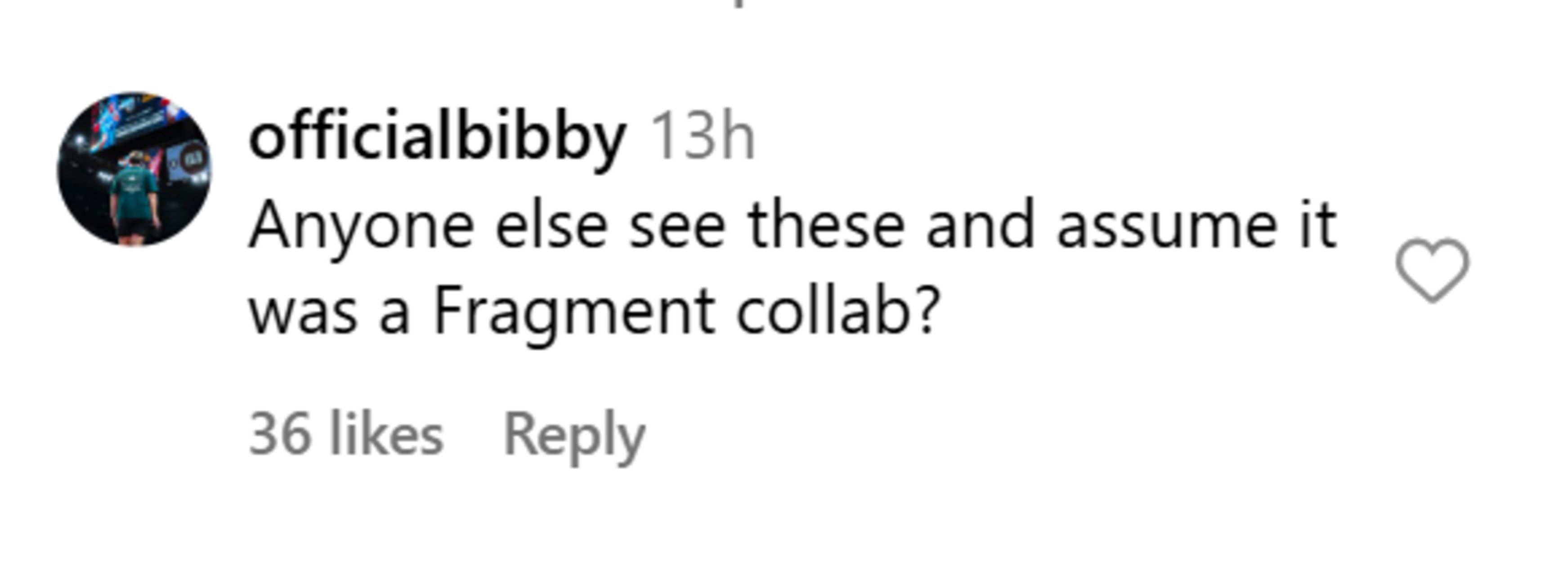 "Anyone else see these and assume it was a Fragment collab?" a user, @officialbibby, commented, thinking it's a Fragment x Nike collab.
