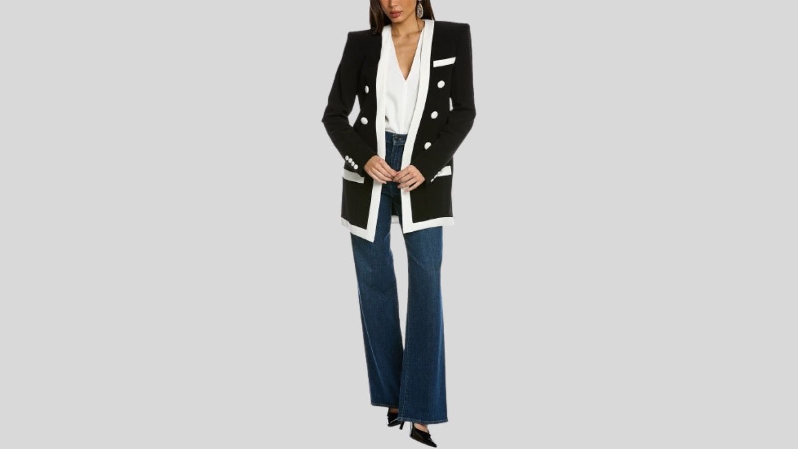 This attention-grabbing jacket from luxury brand Balmain comes in a sleek and trendy silhouette. The black and white jacket can be paired with slacks and wide-leg denim. It can also be dressed up or down, depending on the occasion. The crepe jacket features shoulder padding, a left chest pocket, two front pockets, and button accents on the front and cuffs. You can get this discounted jacket for $1,187.99 instead of $4,095 on Gilt.