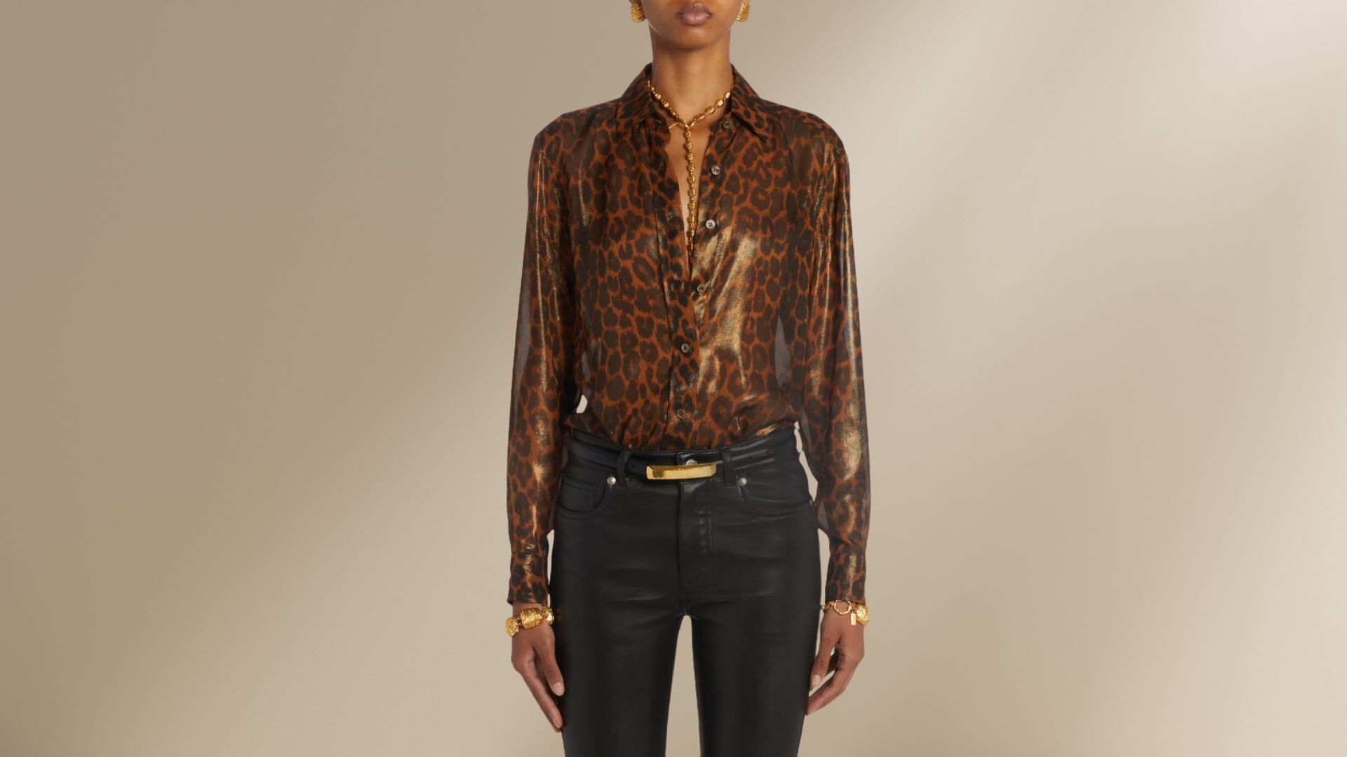 2) Tom Ford Laminated Leopard Metallic Silk Button-Up Shirt