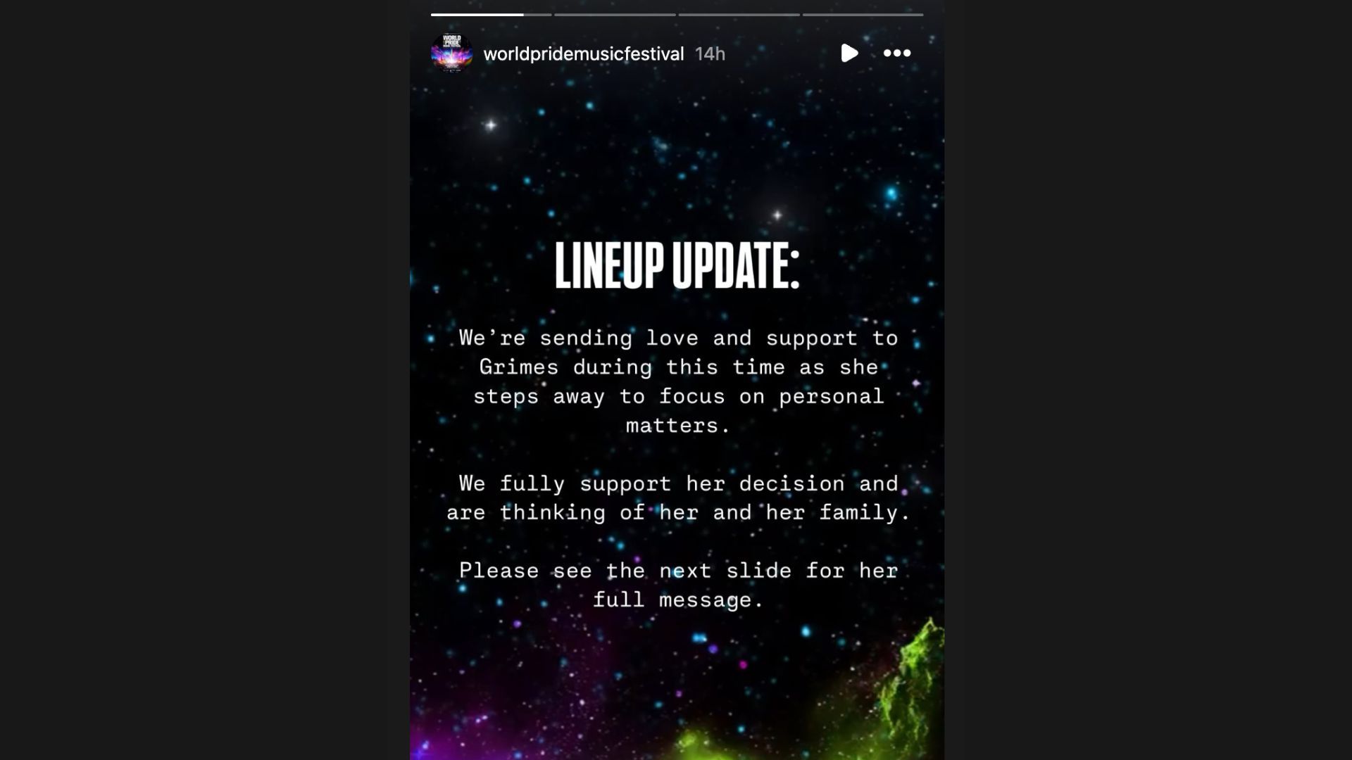 World Pride Festival updates fans after Grimes cancels performance