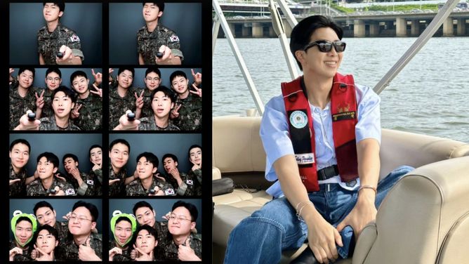 “JOON LOOK SO FINEEEE”: Netizens react as BTS' RM shares his photos in uniform with fellow soldiers ahead of military discharge