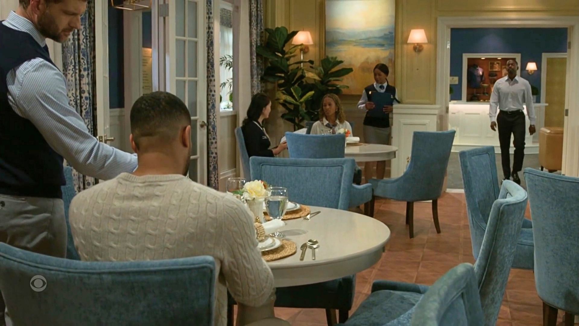 Well, we saw how hard it is to get a cup of coffee at the Fairmont Crest Country Club, that's for sure. Martin (Brandon Claybon) was on his way to the FCCC (FC country club) to meet his dad, as they hadn't talked since Martin accosted Ted (Keith D. Robinson) in his hotel room. Now, with the benefit of hindsight and realizing he’s keeping secrets and lying to his husband, he’s not so different and can offer a bit more compassion and understanding than he has done so far. Martin takes a seat and is asked if he would like some coffee.