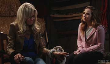 In the Newman stables, Mariah and Tessa panicked when Alice fainted. "Holy crap, she thinks I'm my sister!" Mariah exclaimed. Tessa tried to revive Alice, and Mariah asked if Alice had said anything. Tessa reported that Alice hadn't, and she dryly noted that Alice wasn't talkative while passed out, either. Mariah worried that they couldn't do it alone, and she prepared to leave to get backup. Mariah told Tessa not to let Alice get away, since Cassie might be their last hope.